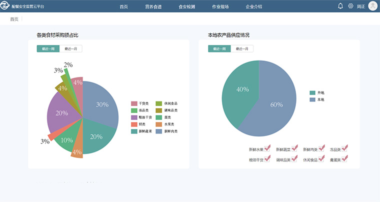 設備:智慧食安展示屏。實現廚工人臉識別自動測溫、食安臺賬對接、留樣機操作自動記錄、食堂視頻 監控及直播、運營能耗監控、操作間環境溫度濕度監控。