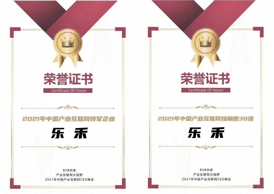 樂禾的數字化探索已取得了階段性成果,于2021年底榮獲“2021年中國產業互聯網領軍企業獎”及“2021年中國產業互聯網獨角獸企業30強”兩項大獎。